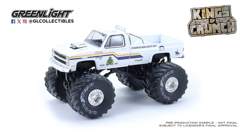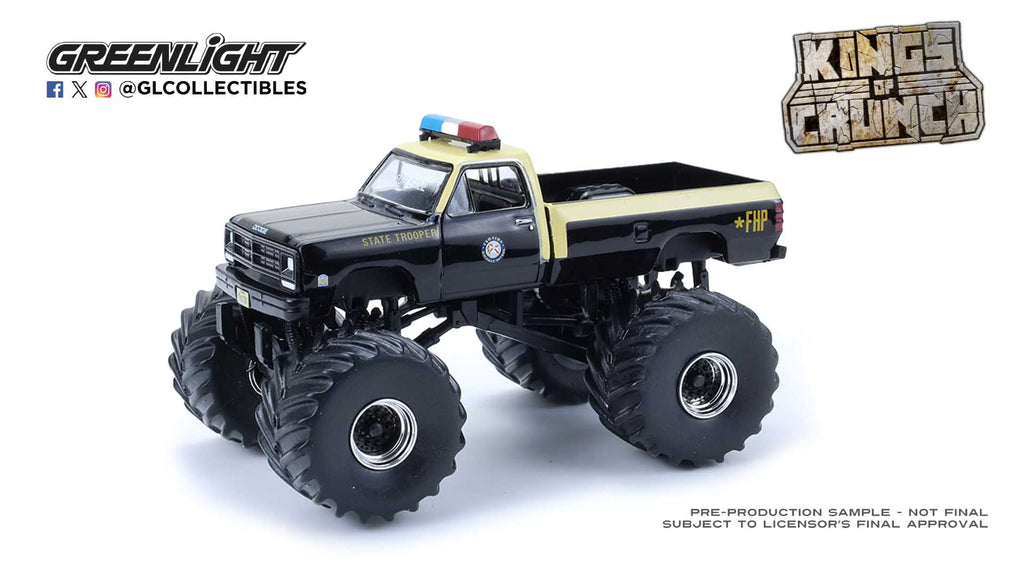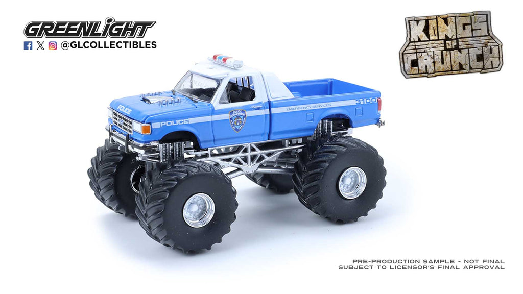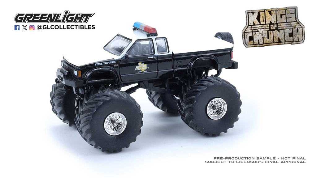 Crush the competition with this GreenLight Kings of Crunch Hot Pursuit Special Edition 1:64 diecast set. Featuring bold police-inspired graphics, rugged monster truck styling, and authentic detailing, this collectible combines law enforcement flair with classic Kings of Crunch toughness. A standout piece for diecast collectors and monster truck fans alike.