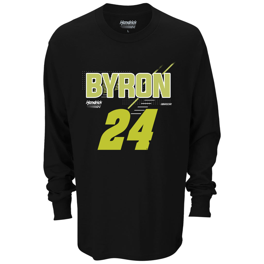 This William Byron long sleeve t-shirt features front screen printed graphics of his name, car number, team logo, and NASCAR logo. Officially licensed and made of 100% cotton for comfort and fit.